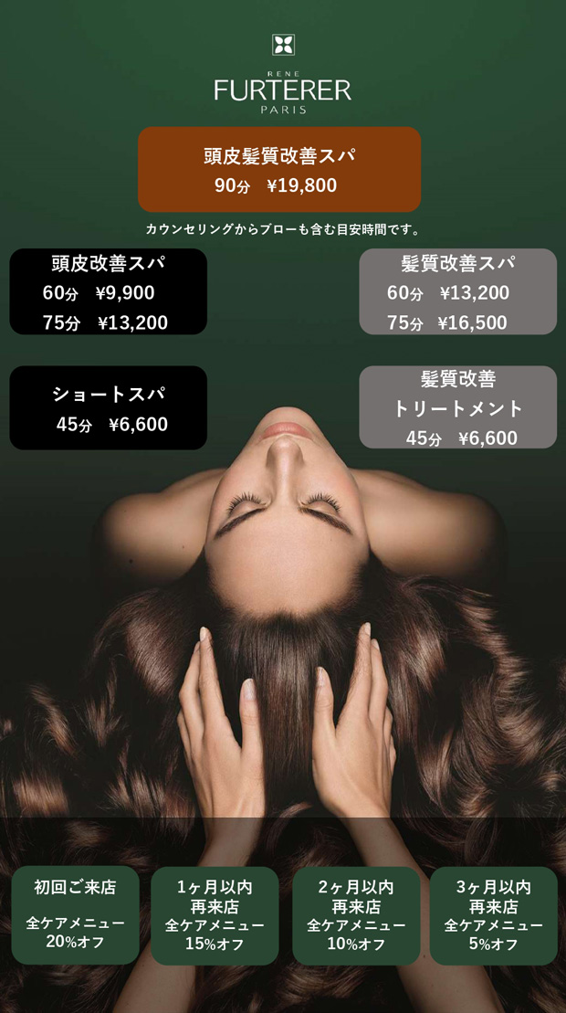 ![]() | スコープを使いどのような頭皮なのかを診断してあなたにあったオイル・シャンプー・トリートメント・ケアを決めていきます。(スコープは90分、120分のみ) |